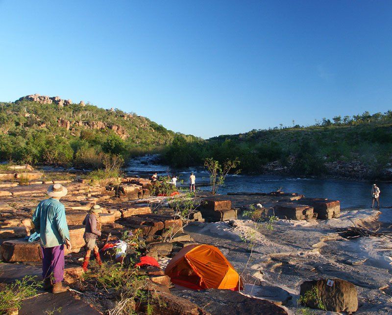 From there, we work our way to the Barramundi system with its many waterfalls. From our final Barramundi camp, a steep climb breings us to a spectacular vantage point where we enjoy a magnificent view across the plateau and over the broken rock country that makes up the headwaters of Waterfall Creek.
