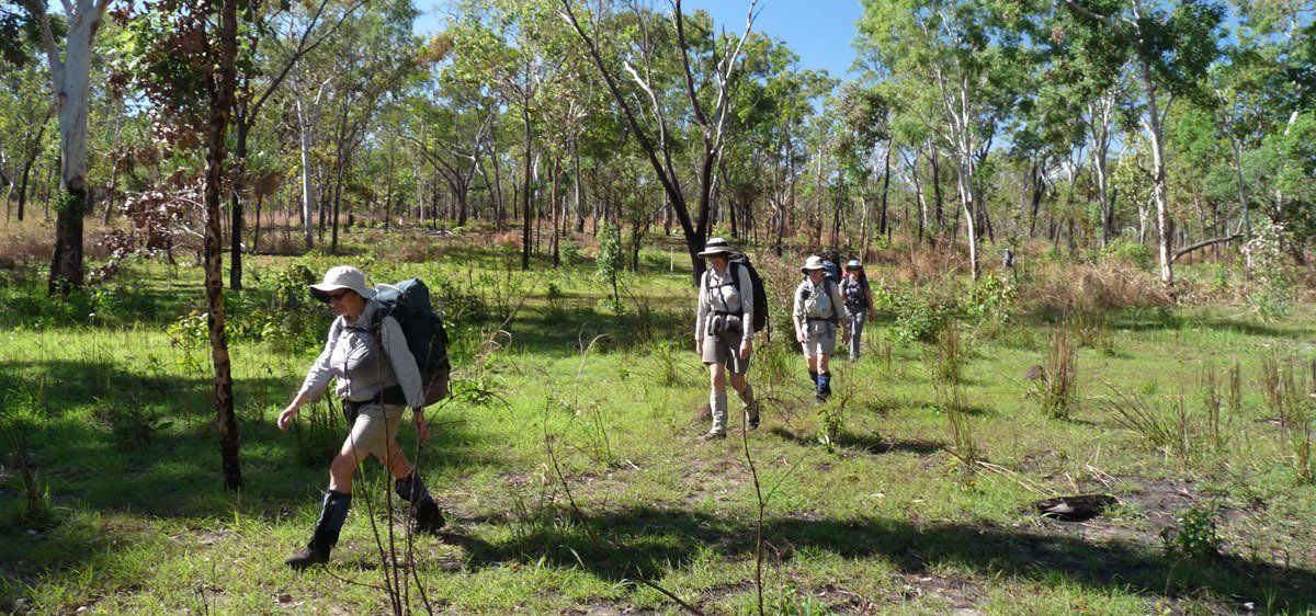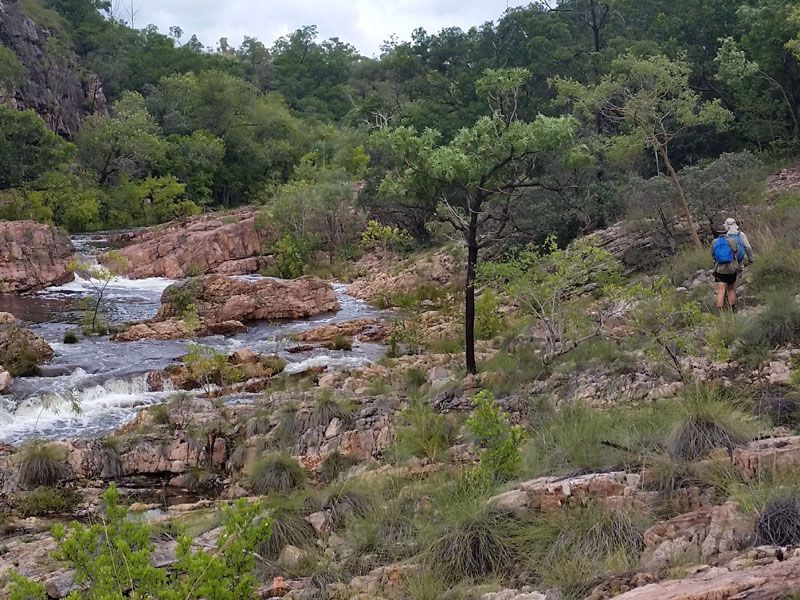 Much of the walking is through relatively flat, open woodland with a grassy understorey. Some short sections of grass may hide a broken rocky surface where you will have to be particularly careful. There may be some slow sections where you will have to pass though thick scrub. The vegetation can vary from year to year depending on when last burnt. Much of section two is on trails where the vegetation is not much of a problem.