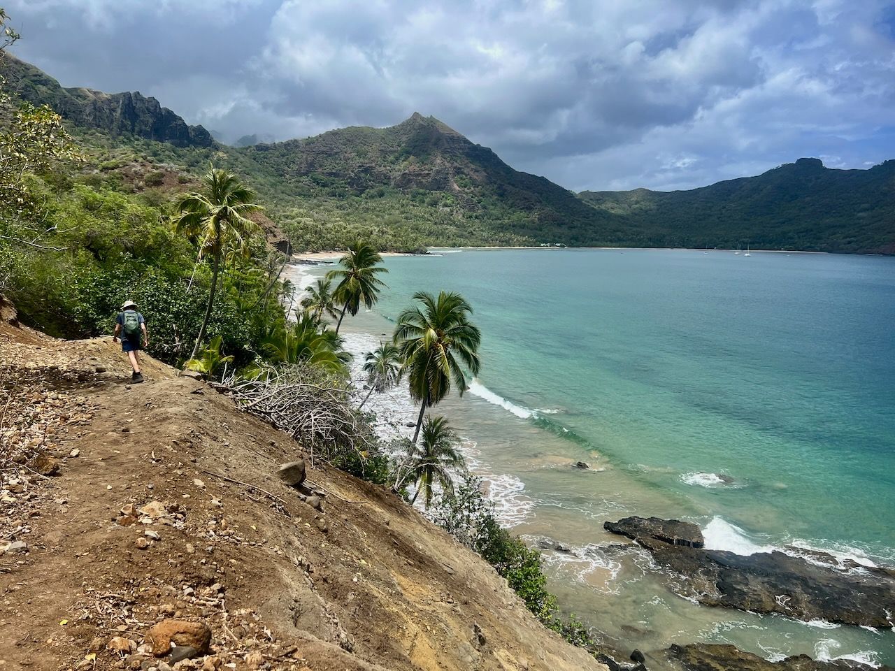 After 5 or 6 days on Hiva Oa, we'll take a short flight to Nuku Hiva, the largest island in the Marquesas. Our first hike will be near the village of Anaho, in the far north, where we can likely set up a tent camp. Our second excursion will take us to the south of the island, to the valley of Hakaui, which we will reach by boat. A walk through the rainforest will take us to the highest waterfall of Polynesia.