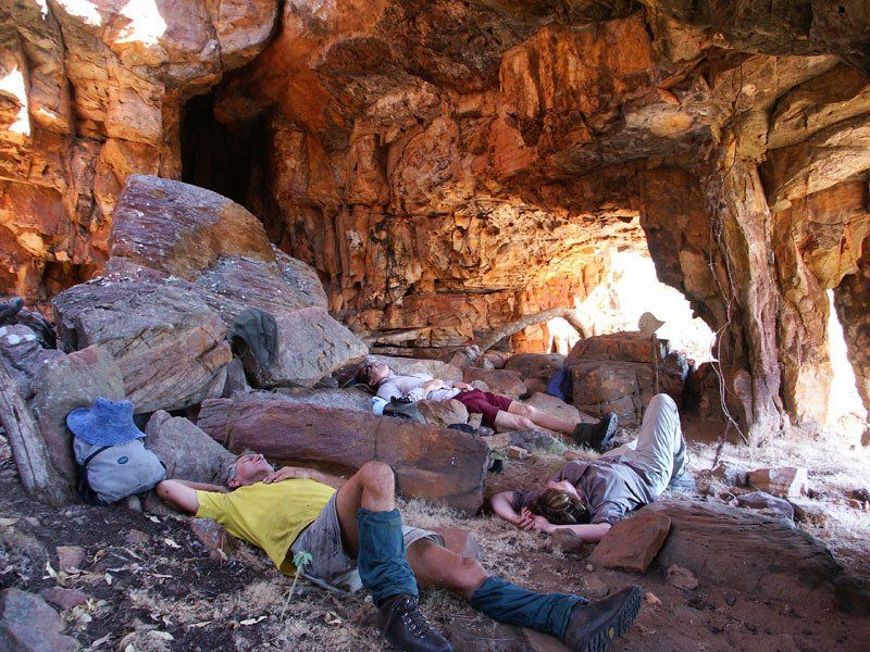 From the top of the gorge, we walk back to the Mitchell River upstream of the falls. If time permits, we spend a day there, exploring the rock formations, looking at the Aboriginal art sites and enjoying the pools.