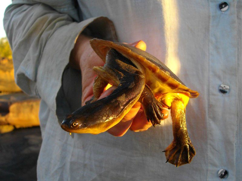 Another day's walk brings us to a wonderful campsite in a small gorge. The following day we break out of the rugged country and cross back to the Mitchell River watershed, stopping to explore some of the small creeks where we saw the most wildlife on earlier trips.