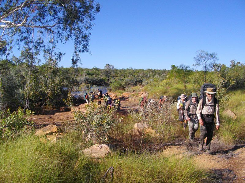 Can vary from year to year depending on when last burnt. It is likely that you will spend some time pushing through some fairly thick scrub or grass.  At this time of year, the spear grass has finished seeding and dried out. It may be necessary to push through thick spinifex in some places.