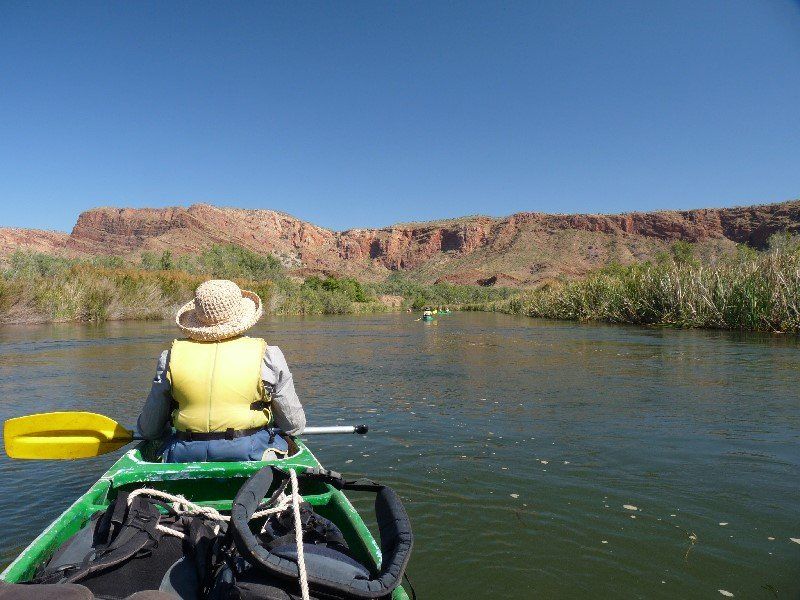 Some of our Carr Boyd bushwalks get to the beginning of the walk by boat along the Ord. On other trips, we view the Ord at a more relaxed pace with a leisurely canoe paddle from Lake Argyle to Kununurra. The paddle takes you through some of the prettiest country in the Carr Boyds. The Ord is fast enough so you can relax and let it do much of the work, slow enough so that even a complete novice should have no problem. Look down and see schools of fish swim by in the clear water below. Look up and enjoy the birds that let you approach more closely than they would if you were on foot.